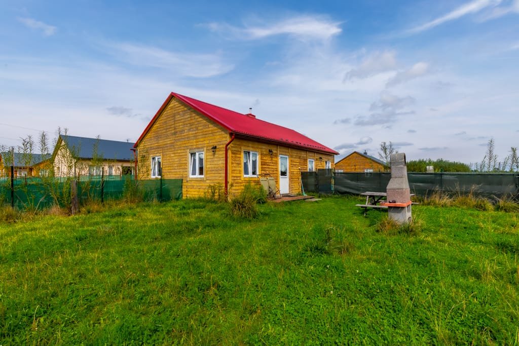 Domek z aneksem kuchenym, przestrzenią dzienną z rozkładaną sofą oraz sypialnia z podwójnym łóżkiem